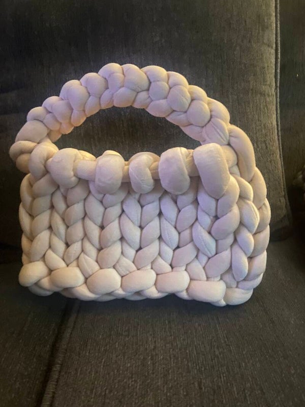 This one-of-a-kind handmade crochet handbag showcases intricate stitching and unique design, making it a truly special accessory.